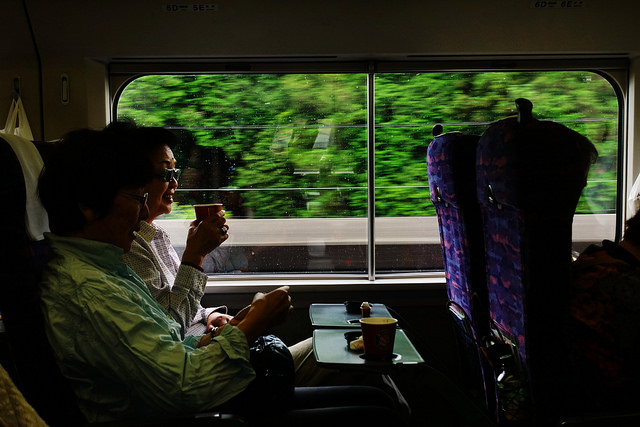 看著窗外的風景,邊吃著便當,往目的地前進